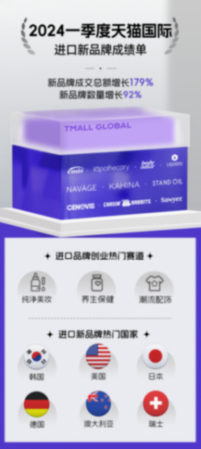 今年一季度,天貓國際新品牌數量同比增長92%,新品牌成交總額同比增長179%。其中,純凈美妝、養生保健、潮流配飾成為增長迅猛的品類賽道。韓國、美國、日本、德國、澳大利亞是入駐新品牌數量最多的五個國家。