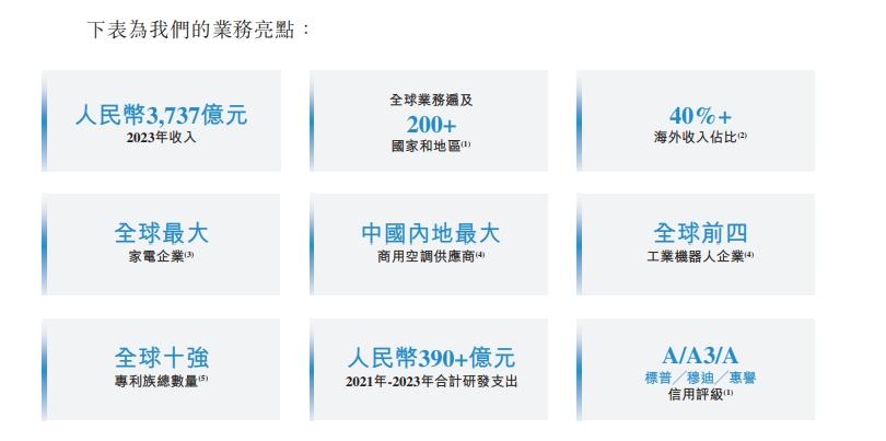 招股書(shū)顯示,按照2023年銷(xiāo)量及收入計(jì)算,美的集團(tuán)是全球最大的家電企業(yè),按銷(xiāo)量計(jì)市場(chǎng)份額為7.9%。2023年,按銷(xiāo)量計(jì),美的集團(tuán)在家用空調(diào)、洗衣機(jī)、冰箱以及廚電及其他家電領(lǐng)域均躋身全球前三名,分別占23.7%、14.2%、10.5%及6.0%的市場(chǎng)份額。
