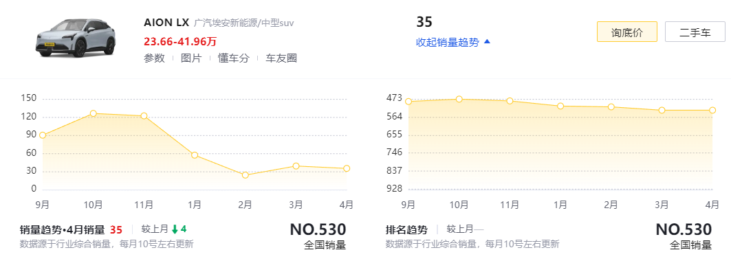 過去幾年,廣汽埃安在網約車市場可以說是叱咤風云,AION S和AION Y都給廣汽埃安帶來了巨大的銷量,但是看到該品牌最初主打高端的AION LX等車型卻是銷量欠佳,4月的銷量甚至只有35輛。廣汽集團此后發布的獨立高端品牌昊鉑也是存在感極低,并不能成氣候。