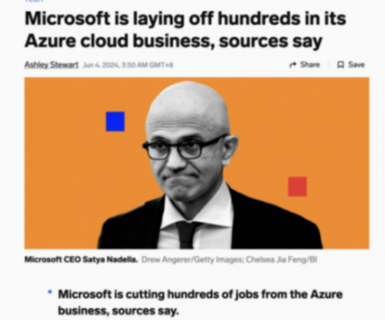 除了已有客戶與可視前景均不樂觀的AWS外,一路狂奔向上的微軟Azure云,也在為了生成式AI讓路而裁員。