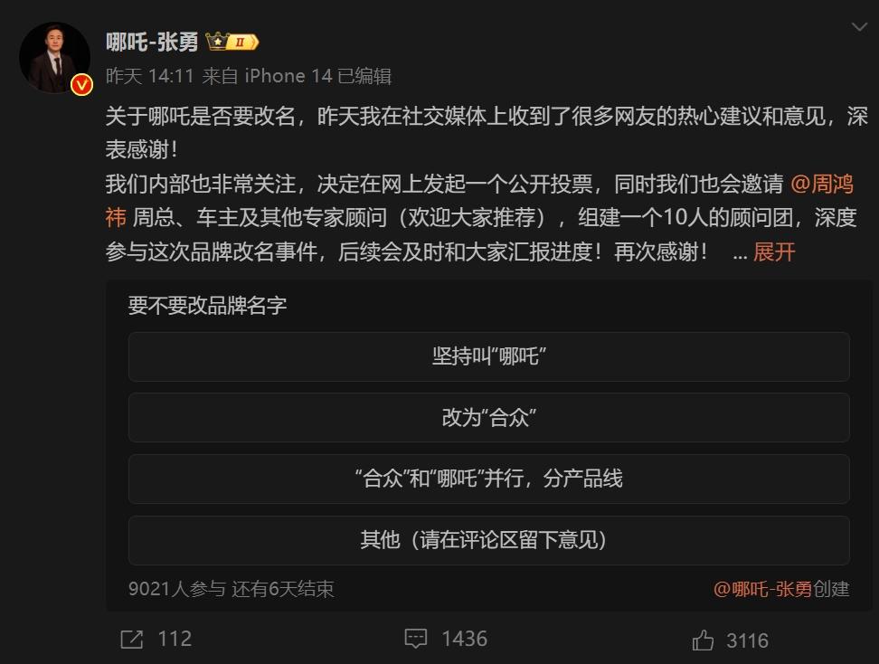 對此,哪吒汽車CEO張勇回應,品牌正準備發起調研,聽聽各位網友的意見再決定是否改名,但在小通看來,車企和人不同很難通過改名來扭轉運勢,想要重新回到牌桌上哪吒要做的事情絕不只是改名那么簡單。