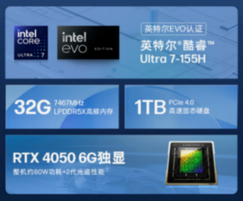 • Ultra 7 155H / RTX 4050 / 32GB 版本 8999 元