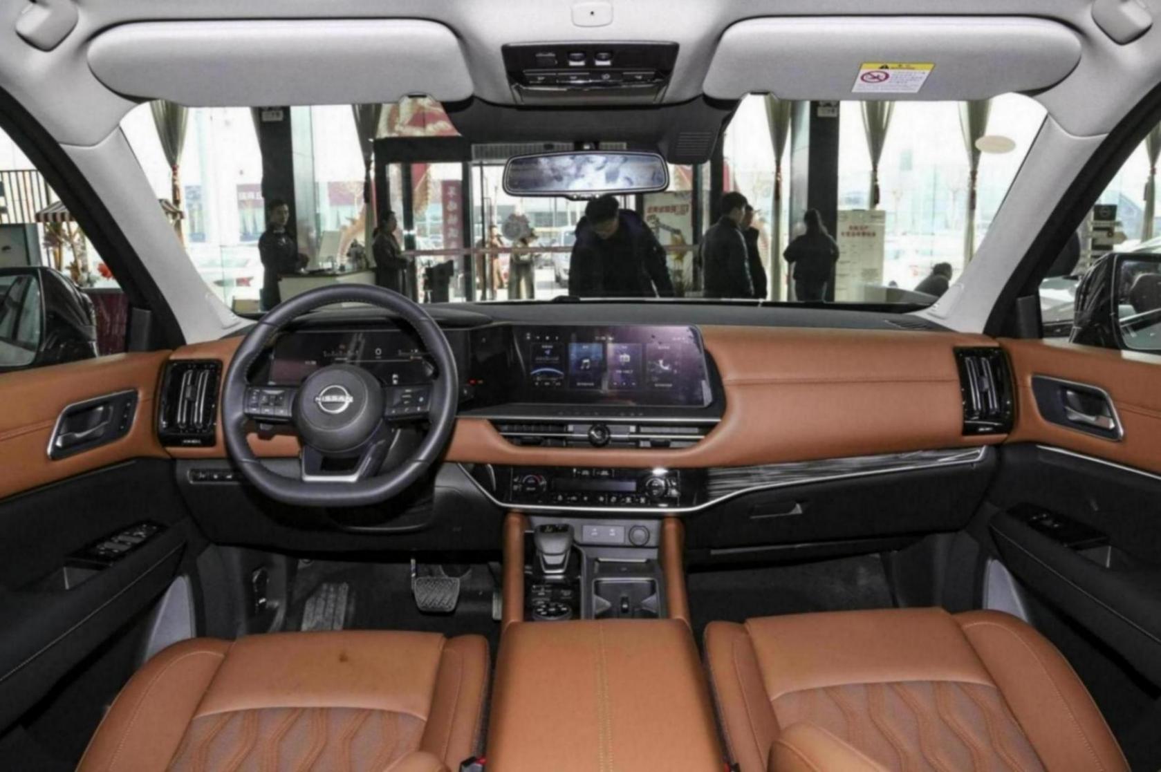 進入日產探陸車內,有順應潮流的設計,比如說中控區域雙連屏,尺寸都是在12.3寸,而我們實拍的內飾是棕色,看上去會更有豪華感一些。作為頂配版車型,真皮方向盤提供了電動調節功能,并且支持換擋撥片以及加熱。除此之外,HUD抬頭顯示功能,讓我們在駕車的時候會更加便捷,不需要盯著中控屏的導航。