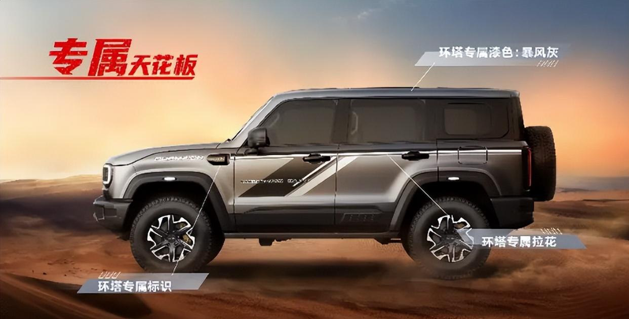 這款車基于全新的BJ40刀鋒英雄版打造,但是采用了專屬的暴風灰車身配色,以及環塔專屬的拉花和標識,辨識度還是比較高的。