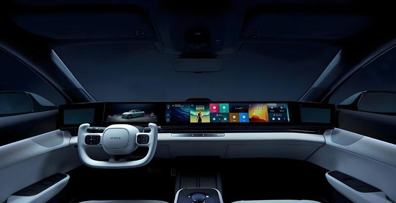 從索尼新車曝光的圖片來看,新車以新能源設計風格為主,封閉式格柵,溜背式轎跑造型,車身尺寸4915/1900/1460mm,軸距3000mm,與小米SU7軸距相同,新車的設計極具科技感,貫穿式燈組內部為一塊巨幅顯示屏,可顯示Afeela標識及充電信息,車頂配有一顆激光雷達。貫穿式尾燈同樣非常醒目。車內半幅式方向盤,配合貫穿一體式大屏,搭載運算力超強的高通驍龍芯片,后排配有娛樂顯示屏可接手柄玩PS游戲。電池及動力系統目前沒有官方官宣,可以預計會配備能量密度較高的電池組,續航能力或接近800KM。