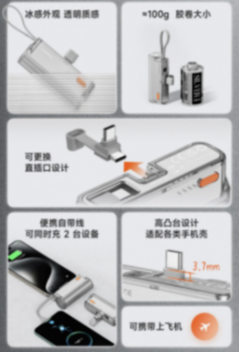 官方介紹稱,這款移動(dòng)電源重量約 100 克,外觀采用雙注塑工藝,呈現(xiàn)“透明質(zhì)感”。