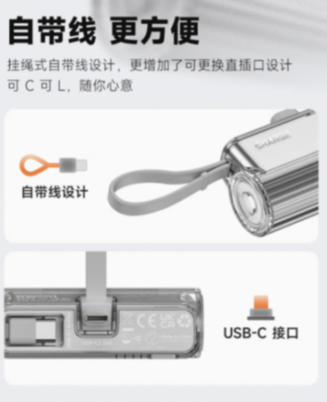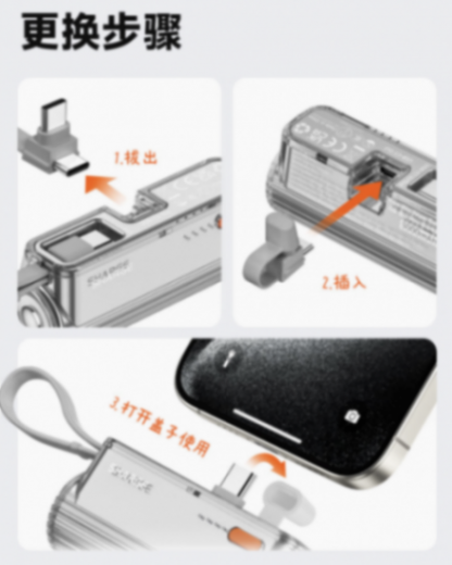 IT之家注意到,這款移動(dòng)電源采用可更換接口設(shè)計(jì),頂部 USB-C 接口可更換為 Lightning 接口,還額外帶有一根 USB-C 線,不用時(shí)可以用作掛繩,支持雙設(shè)備同時(shí)充電。