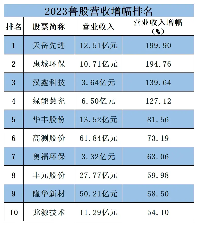 此外,惠城環保、漢鑫科技、綠能慧充3家公司營收增幅也超過100%。