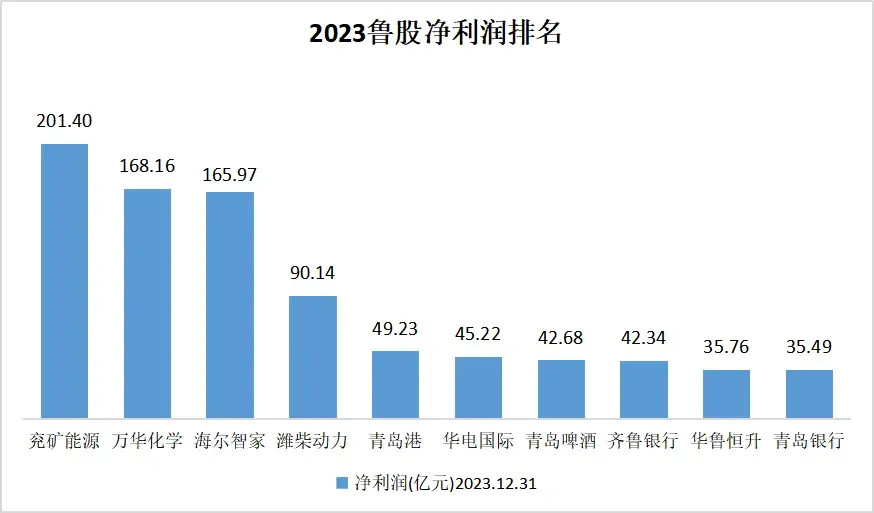 同去年相比,盈利榜前三甲的位次并未發生變化,依然是兗礦能源、萬華化學、海爾智家,這三家也是凈利潤超過百億元的魯股。