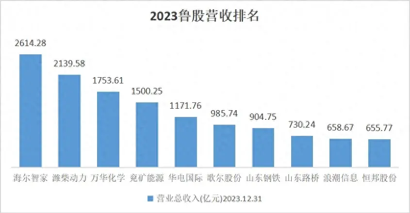 與去年相比,海爾智家憑借2614.28億元的營收,蟬聯“營收王”,濰柴動力則突破兩千億元營收,躍居營收榜第二位。同時,千億營收“陣營”少了歌爾股份和山東鋼鐵這兩名成員。