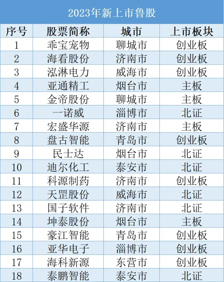 值得一提的是,2023年多了18只魯股新生力量,其中8只登陸創業板,展現了山東企業的創新潛質和活力。