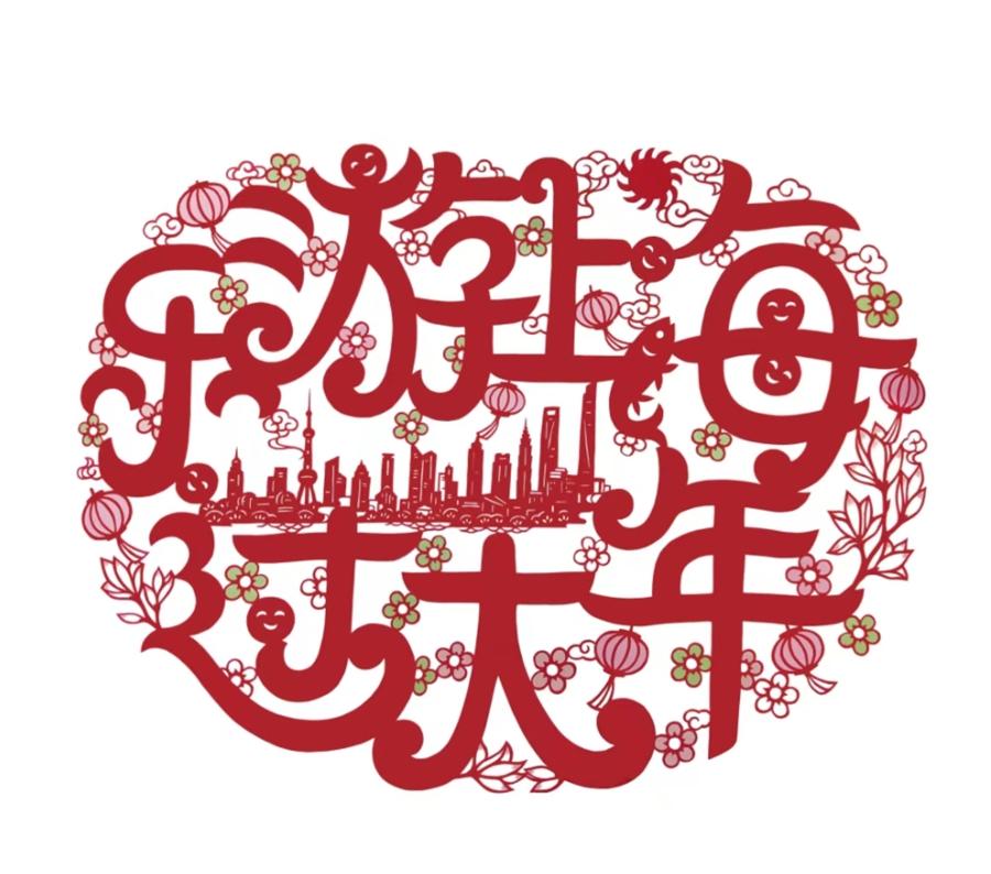 本次“樂游上海過大年”主視覺由專業設計師創作出基本概念,邀請國家級非遺剪紙代表性傳承人奚小琴女士進行再創作,以文字為核心元素剪出獨特的心形造型,展現都市時尚年味。其中,主視覺的心形造型象征上海迎接四方游客的熱心和暖心,活潑靈動的“樂游上海過大年”字形展現都市文旅的創造力和活力,點綴其中的陽光、笑臉表達人們歡度春節的好心情。此外,冬日梅花、舞動的燈籠烘托出節日的歡慶氛圍,市花白玉蘭和日新月異的上海特色建筑群喜迎八方來客,魚躍則預示著年年有余、發展向上,涵義豐富。