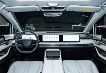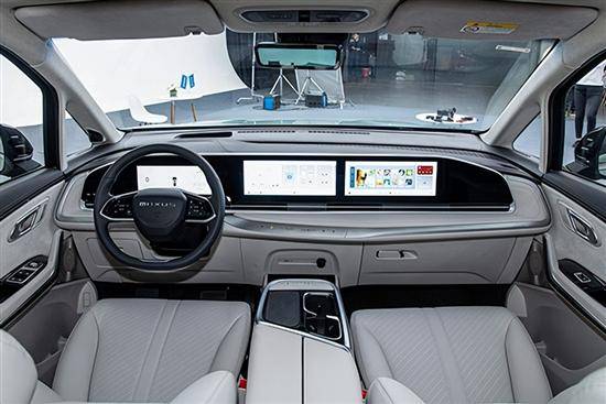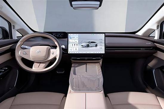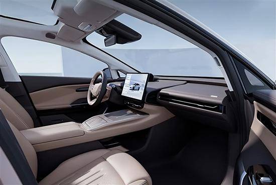 內飾方面,新車采用新能源車型主流的簡約設計風格,中控臺配備了一體式懸浮大屏,集成全液晶儀表、中控屏以及副駕娛樂屏三塊屏幕,營造出濃郁的科技氛圍。