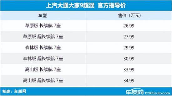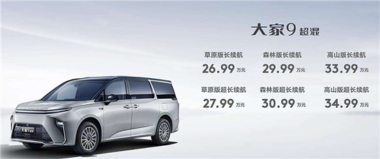 6月7日,上汽大通大家9插電混動版正式上市,新車推出6款車型,售價區間26.99-34.99萬元。新車搭載1.5T插混專用發動機,以及24.7kWh磷酸鐵鋰與39.7kWh三元鋰電池組。綜合續航超過1300公里。