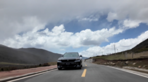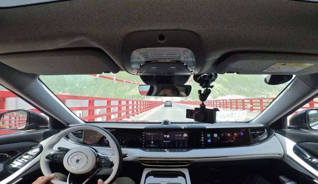 而在折多山路上,雙電機四驅版車型最大360kW的輸出功率和峰值720N·m的扭矩就有了用武之地,即使入山時的電量僅有20%的剩余,高原缺氧環境下的動力依然充沛,我們爬坡和超車時的信心很足。