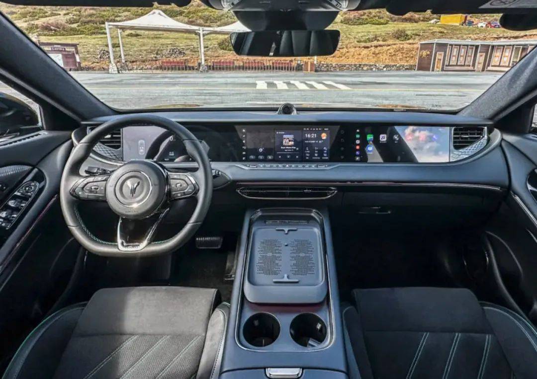 內飾有兩款風格可選,深邃的黑內飾和明媚的白內飾。個人很喜歡黑色內飾搭配綠色縫線的方案,與動感的外觀風格極搭,而且質感在線,方向盤和座椅都有采用麂皮面料,車門飾板則使用了碳纖維處理。全景天幕支持10擋通透性可調后,實用性拉滿。