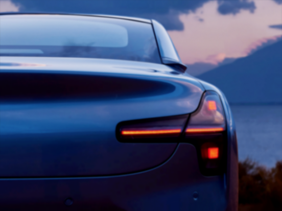 車尾部分,尾燈造型和前大燈相呼應,包括內部光源結構也是相對應的。尾箱蓋后端還帶有突出的小鴨尾造型。