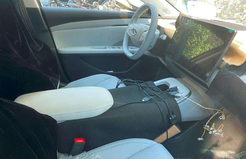 內飾部分,從目前曝光的諜照來看,中控臺造型布局和目前很多新能源車型風格大同小異,造型簡潔,突出了大屏的設計,使用了兩幅式的方向盤。
