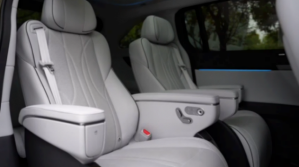 二排兩個頭等Nappa真皮包裹的大沙發中暗藏了十點按摩,上車就能來個馬殺雞。