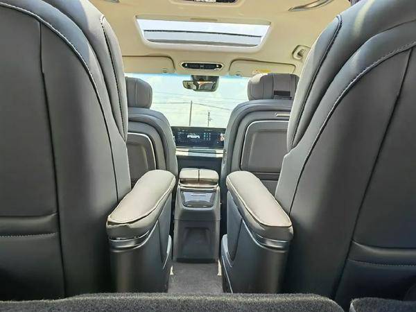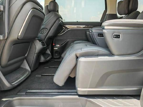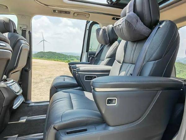第二排的兩個零壓豪華頭等艙座椅更是讓人感受到了極致的舒適體驗。在長途旅行中,還可以享受到座椅5吋全功能扶手觸控屏+電動滑軌4向調(diào)節(jié)、2向電動頭枕、電動伸縮腿托、加熱通風(fēng),8種按摩形式+3檔按摩強(qiáng)度等多種功能帶來的舒適感受。同時,不僅配有小桌板,方便后排放置隨身物品,還配有腳蹬,可任意伸展腿部,再加上腿托,緩解長時乘坐的腿腳疲勞。