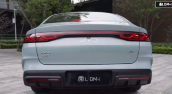 車尾配備了全新的關鍵式尾燈,細節上采用了更有辨識度的中國結造型。秦plus上的中置英文車標在秦l上則改為了全新潛能點亮的BYD字母標識。整體視覺沖擊力非常強。