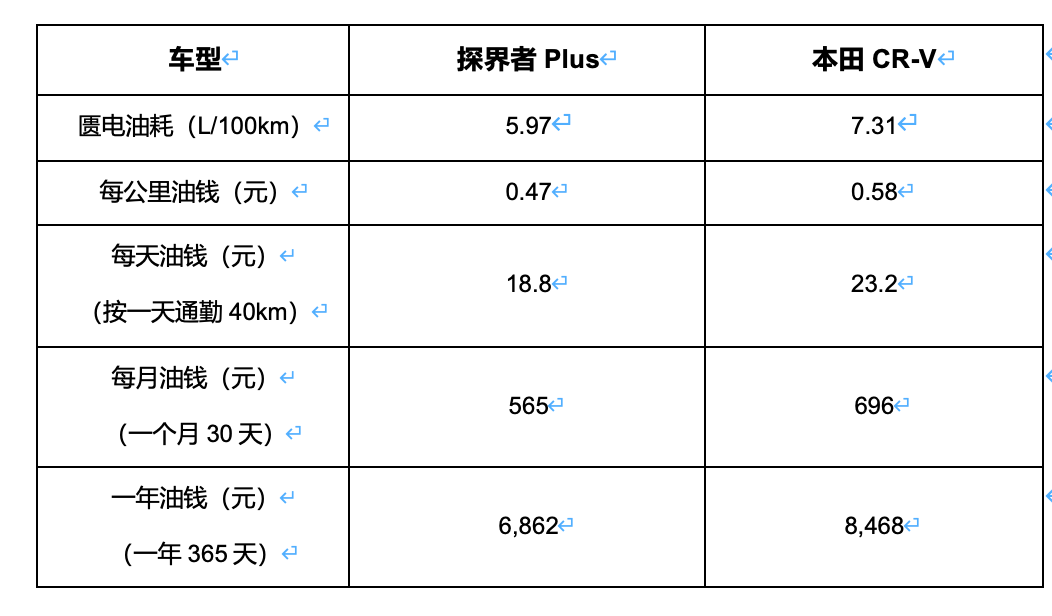 在購車成本之外,兩款車能帶來的體驗也大不相同。得益于插電混動系統的特性,探界者Plus可以實現中低速電驅為主,高速發動機介入直驅的驅動模式,它的插混系統會在三重AI指控算法的加持下帶來高性能、低能耗的輸出,從而實現更高的燃油經濟性。這款車匱電油耗為5.97L/100km,甚至有媒體實測出3.7L/100km的匱電油耗成績。相比之下,純燃油驅動的CR-V在油耗方面的表現就沒那么出色了,其WLTC綜合油耗為7.31L/100km。這折算下來,一年的油錢也能省不少。