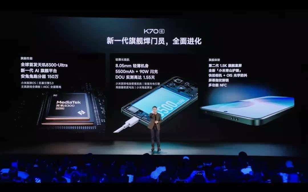 在續航方面,K70E配備了5500mAh大容量電池和90W快充技術。