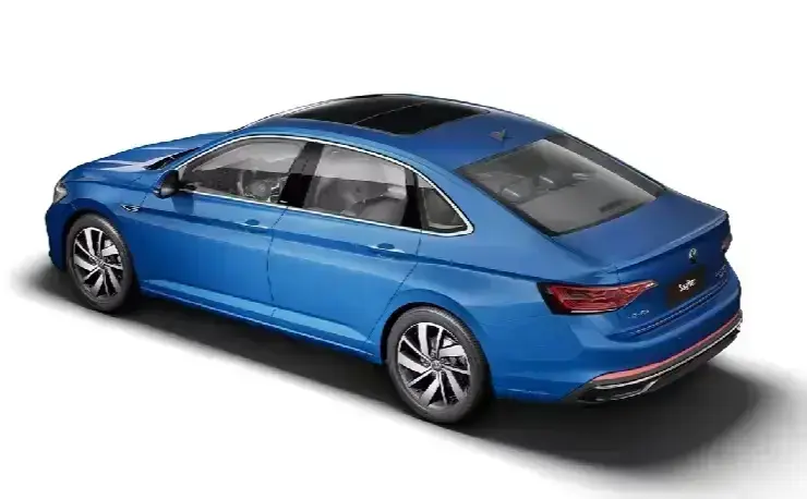 從側面看,速騰300超越版輪廓流暢自然,融合了諸如懸浮式車頂、鯊魚鰭天線等潮流設計元素,刀鋒狀五幅式輪轂與微微側傾的車身相結合,激發出不錯的運動氛圍。此外,速騰300超越版的腰線刻畫極為凌厲,延伸到與前大燈采用呼應設計的尾燈,整體呈現出不錯的視覺效果。