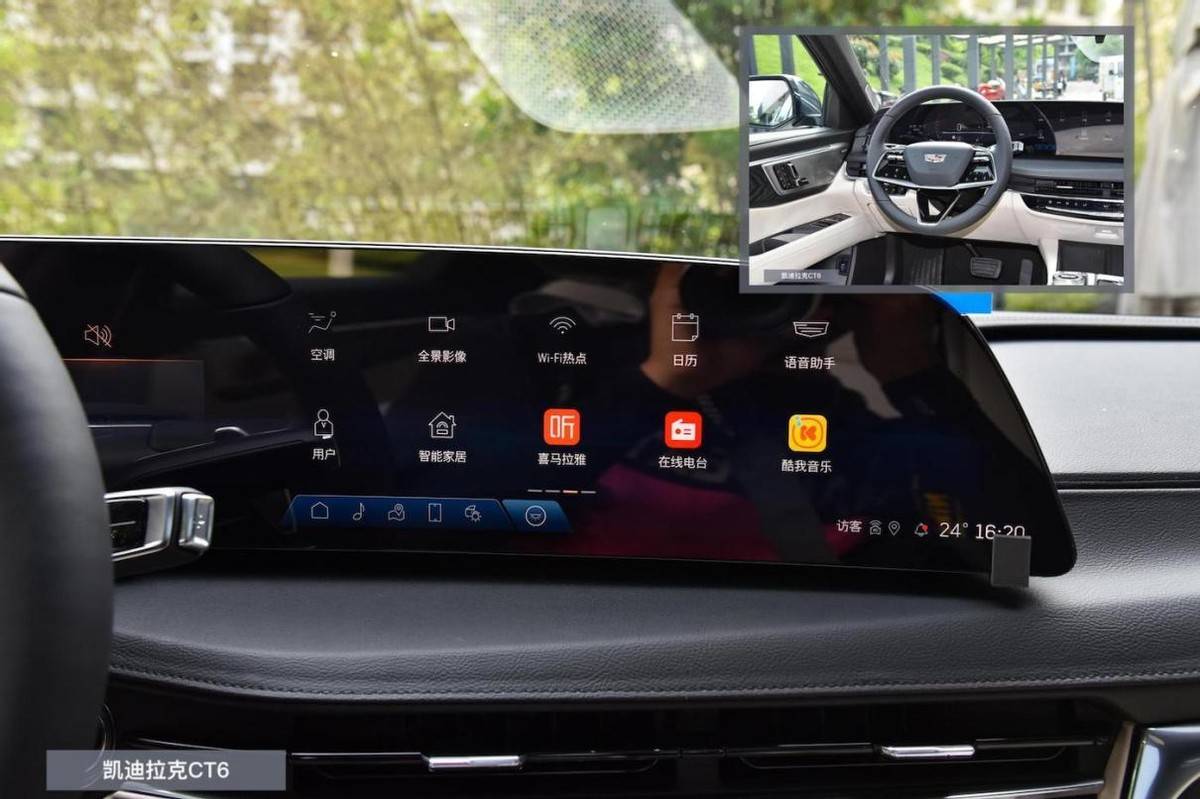 兩款車都采用了稍帶重心偏轉的中控,提供了真皮覆蓋的三輻式方向盤、雙液晶屏、大尺寸天窗以及實現了一定軟包撞色。其中,凱迪拉克CT6通過布局更多數字化觸控設計與33英寸9K廣域屏提升了艙內的科技氛圍,并保留了大量高級金屬件來與烤漆形成混搭,無論是主體風格,還是細節都要更高級。