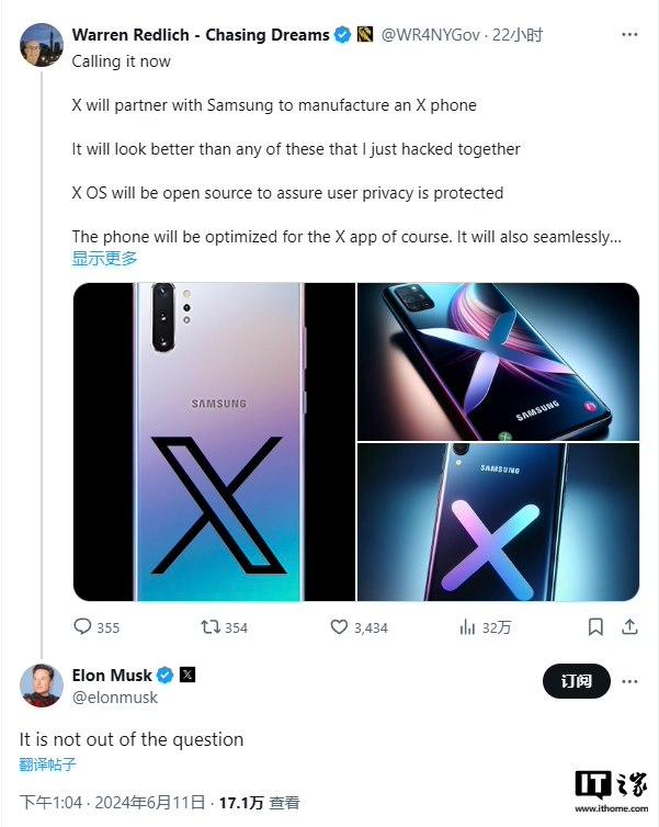 而在本周早些時候,一名網友提出假設:馬斯克將打造一款 X Phone。隨后馬斯克回復稱,“這并非不可能”。