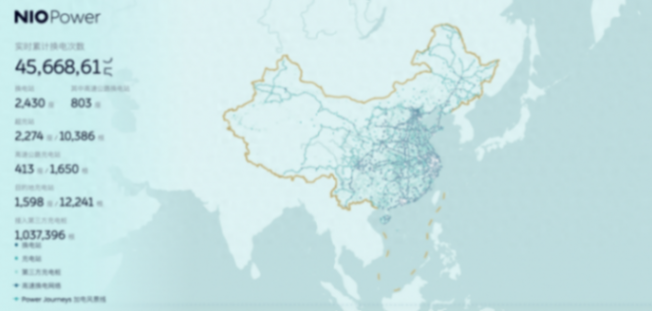 蔚來充換電網絡布局圖 | 來源:蔚來汽車