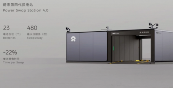 蔚來第四代換電站于 2023 年 12 月發(fā)布,配備 23 個電池倉位,最大日服務 480 次,單次換電時間減少 22%;裝備 60㎡站頂光伏系統(tǒng),每座站每年節(jié)約近 1.8 萬度電,成為光儲充換一體站。