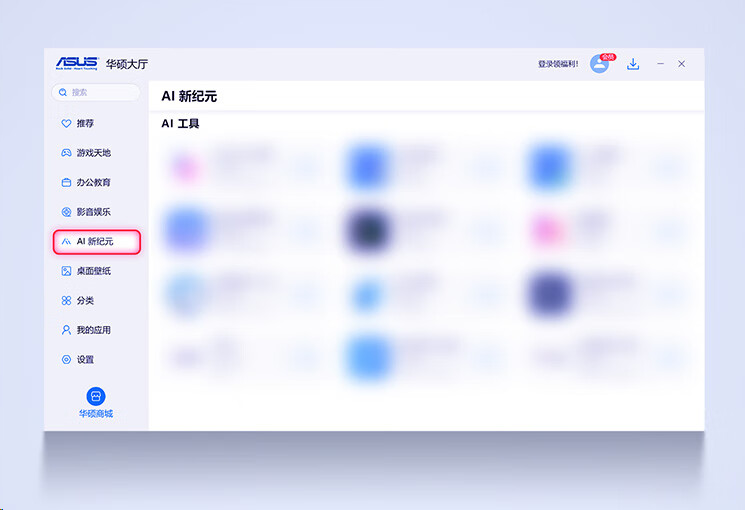 還有一點非常重要的就是關于AI應用,這也是今年酷睿Ultra處理器的大升級之一。我們日常接觸AI是需要自己去找AI相關的軟件,去部署、去安裝才能使用。在這一點上,華碩為了方便用戶更好的接觸AI應用,特別準備了華碩大廳的AI新紀元板塊,可以讓用戶從官方渠道去下載使用AI,避免了很多不必要的煩惱,在這一點上雖然同為AI輕薄本,但聯想是要略遜一籌的。