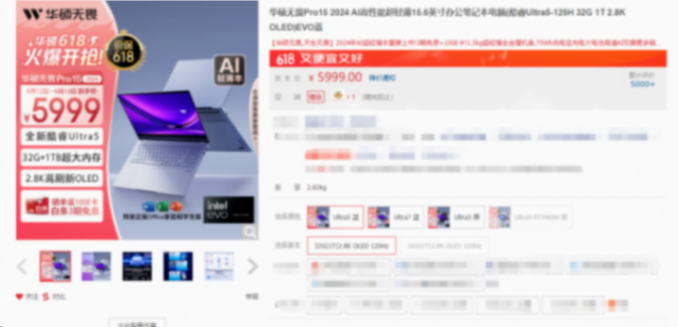 而且從價格上來看,聯想小新Pro16 2024在618期間價格定在了5899的這個價位上,華碩無畏Pro15 2024它的價格在5999,兩者的差價為100元。