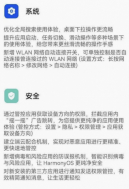 此外該系統還加入了 WLAN 網絡自動連接開關功能,用戶可單獨控制是否自動連接曾連接過的 WLAN 網絡,而且還對性能進行優化,比如全局搜索使用體驗進行升級、應用啟動、任務切換等使用體驗進行優化。