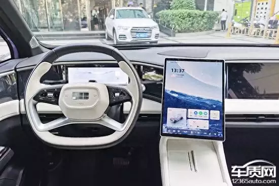 雖然中控屏采用向駕駛員一側傾斜的設計,不過由于屏幕較大,在強光照射下依然存在輕微的反光情況。車內并未提供多媒體實體按鍵,僅在中控屏底部設計了一排觸控按鍵,不過尺寸較大,操作起來還算順手。方向盤多功能控制區采用比較常規的實體按鍵+滾輪的組合,操作簡單方便。多功能按鍵布局較為合理,左側為輔助駕駛相關功能開關,右側集成了多媒體、語音以及菜單等操作按鍵,并且提供了自定義按鍵。