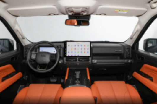 新款哈弗H9的內飾升級與外觀的硬朗化變革相呼應,整體布局也幾乎照搬了坦克系列的設計,中控臺采用了厚重的臺面結構,并以扶手區域為中軸呈現對稱式布局,內飾采用了柔軟的雙色面料覆蓋,車內的交互界面以液晶儀表和14.6英寸中控屏為組合,同時擋把區域也配有相對豐富的實體按鍵,可控制不同模式及差速鎖的調節。
