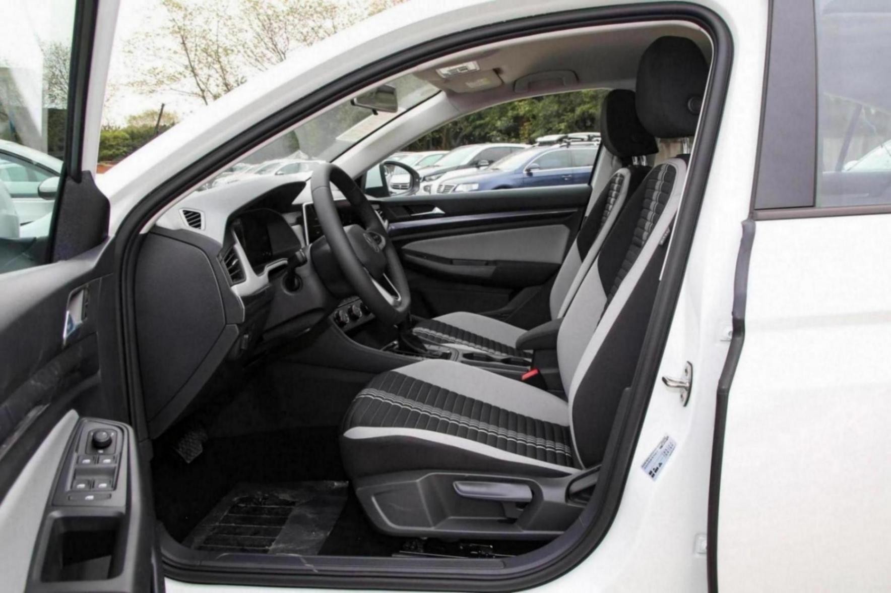 側面來看,這款車的空間表現不錯,彰顯出不錯的線條感,車尾造型凸顯運動感,平直的腰線由前到后貫穿車身,翼子板側裝配一段用于提升辨識度的簡單徽標,15英寸的低風阻鋁合金輪轂雖然尺寸變小了,但視覺上還是能展現出大眾家族化的精致立體感。