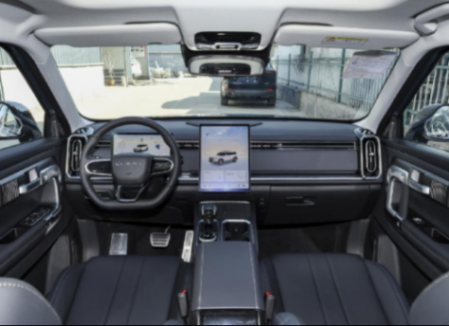 內飾的布局比較簡單,但用料很考究。中控臺上使用了大量軟性皮質材料、搪塑材料以及銀色鍍鉻材料,觸感和檔次感都不差。13.2英寸豎向中控大屏和10.25英寸液晶儀表盤可以實現聯動,通過多指飛屏操作,就可以將中控屏上的信息傳遞到儀表盤上。車機系統搭載了車規級智能芯片——高通驍龍8155芯片,導航、語音識別等操作很敏銳。