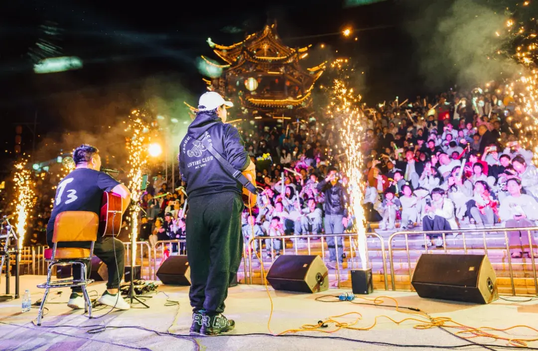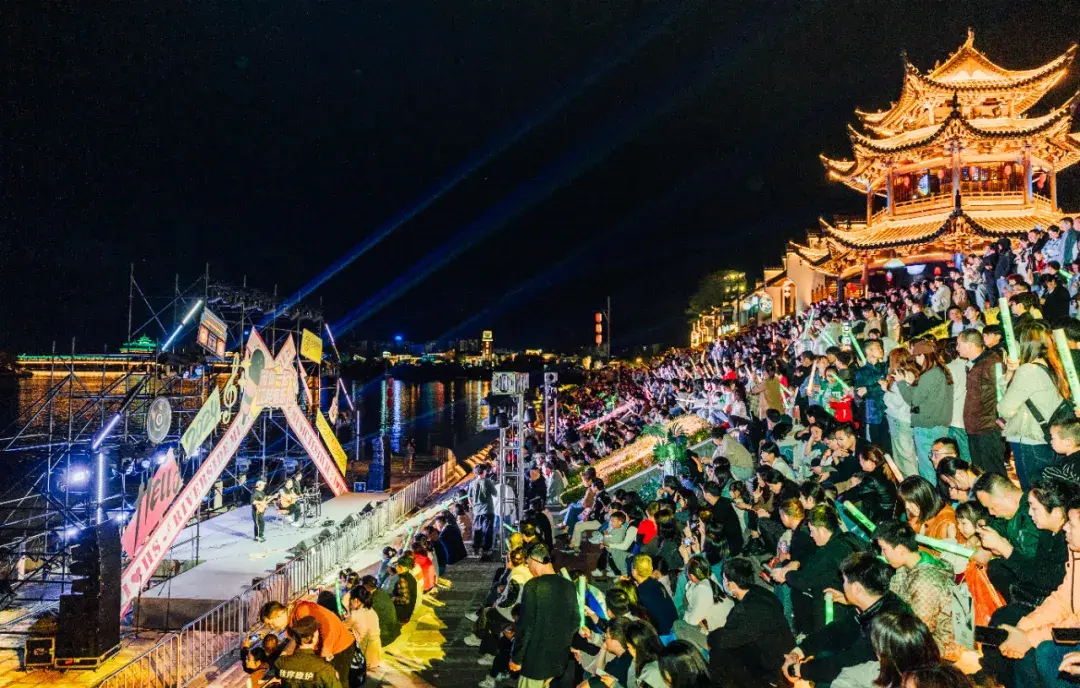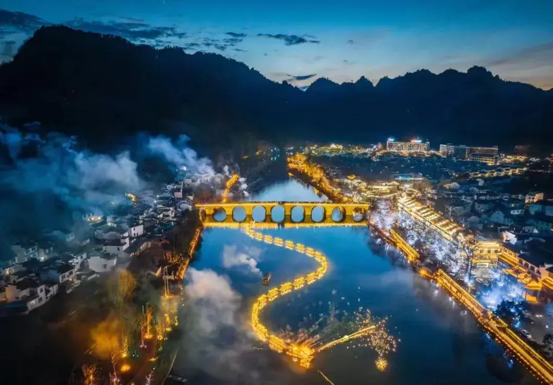 五一假期,夜晚的齊云小鎮熱鬧非凡,齊云打鐵花、魚燈游園會、白岳落花秀、橫江舞金龍等震撼演繹,浪漫花火點亮山河夜色,游客們齊聚橫江之畔,看煙火與煙花在星辰下璀璨交織,感受著假期的美好與奇趣。(谷慶江、祥源齊云山度假區)