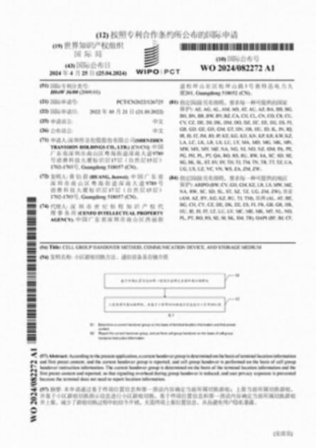 傳音控股公布國際專利申請:“小區群組切換方法、通信設備及存儲介質”