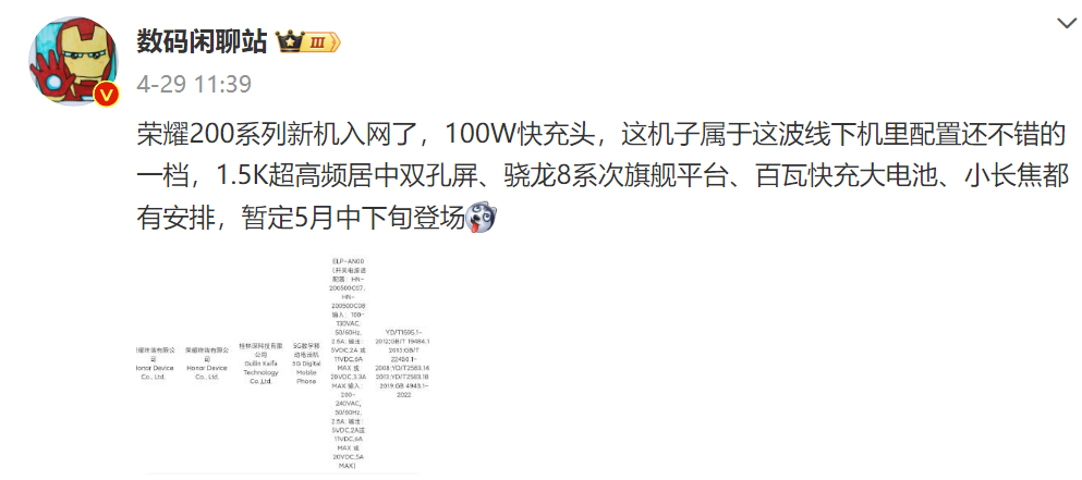 即將發布!榮耀200系列新機三證齊全