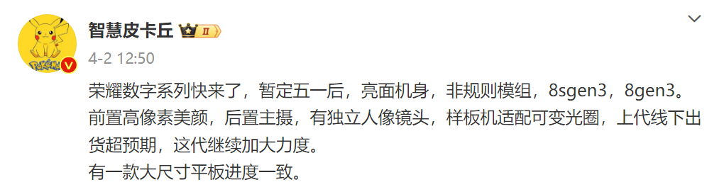按照慣例,榮耀數字系列一年會更新兩代,最新的榮耀100系列手機于去年11月發布,距離現在已經過去了快半年的時間,意味著下一代數字系列也快要發布了。