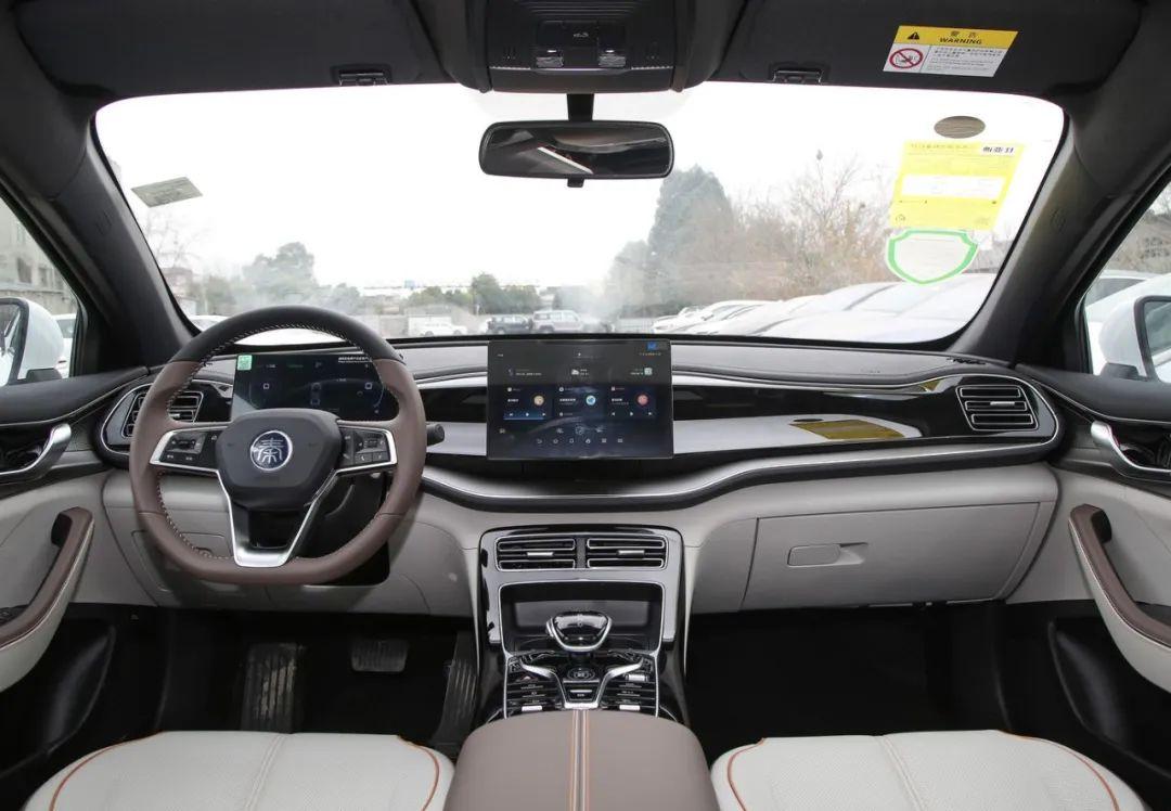 打開車門,全液晶儀表盤與高清觸摸中控屏,帶來了極強的沖擊力。門把、中央扶手等細節處的木紋裝飾,高級感也沒有落下。即便是入門版車型,該車也配備了自動空調、主駕駛電動調節、運動風格座椅、皮質多功能方向盤、語音識別控制系統、定速巡航、倒車影像等一些列功能。動力上,該車搭載的是一套1.5L高效藍鯨混動發動機+電機組成的插混系統,其驅動電機峰值功率高達158kW。同時,該車的入門純電續航達到了70km,這一點值得點贊。