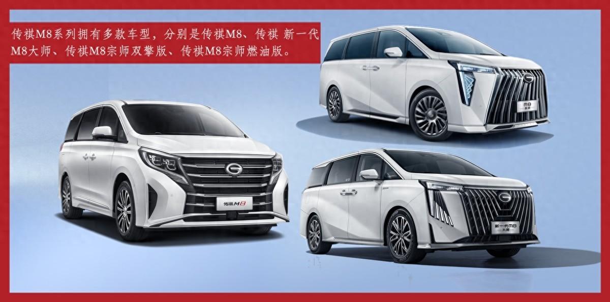 傳祺M8系列擁有多款車型,分別是傳祺M8、傳祺 新一代M8大師、傳祺M8宗師雙擎版、傳祺M8宗師燃油版。接下來我們就分別對這些車型進行解讀,并將重點放在傳祺M8宗師雙擎版。