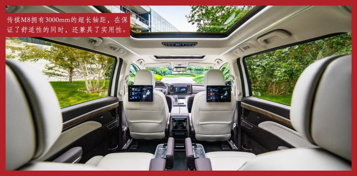 不僅如此,傳祺M8還配備二排尊享獨立頭等艙座椅,支持通風、加熱、按摩、電動腿托,以及座椅靠背電動調節功能和小桌板,再加上3000mm的超長軸距,在保證了舒適性的同時,還兼具了實用性。
