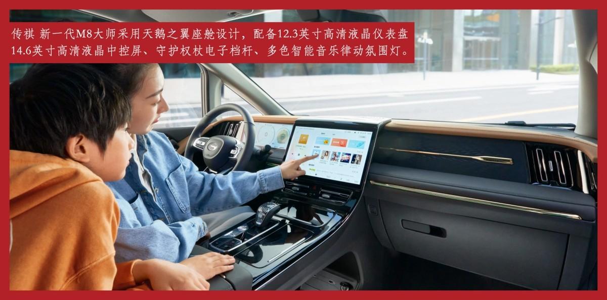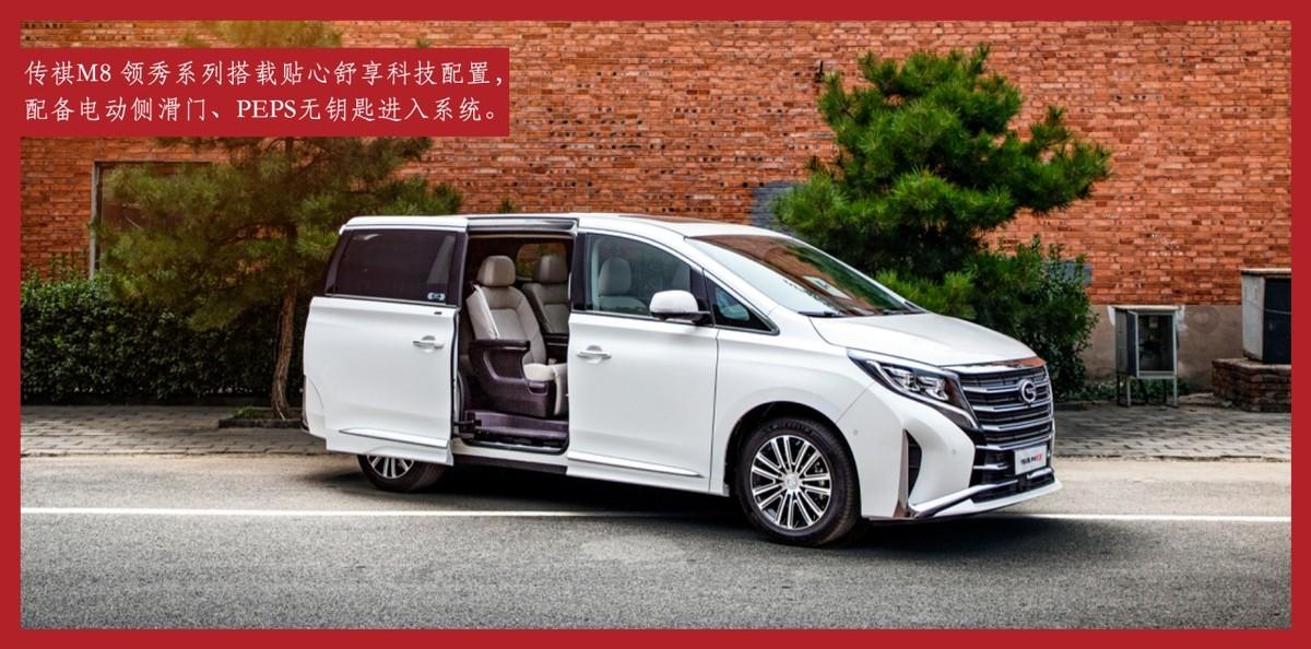 傳祺M8 領秀系列搭載貼心舒享科技配置,配備7英寸液晶組合儀表、10.1英寸全彩液晶中控大屏、電動側滑門、PEPS無鑰匙進入系統。