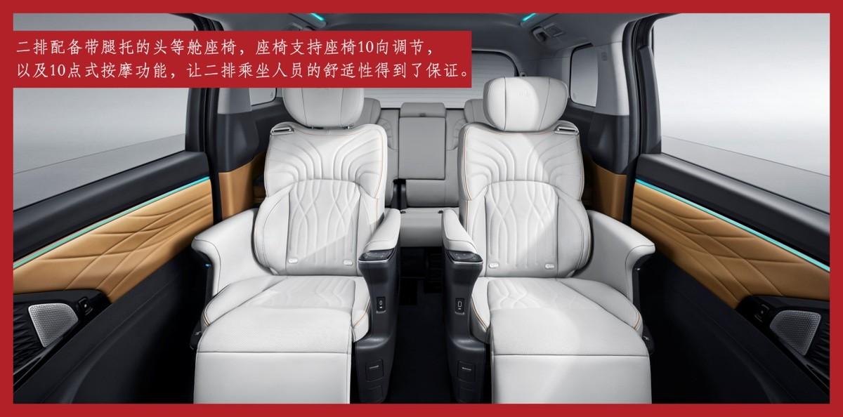 二排同樣配備帶腿托的頭等艙座椅,座椅支持座椅10向調節,包含:2向前后手動、2向靠背電調、2向腿托電調、4向頭枕,以及通風、加熱功能,同樣配備10點式按摩功能,讓二排乘坐人員的舒適性得到了保證。為了提升人性化與便捷性,M8大師還配備雙側電動滑移門、冷熱杯托、無風感空調,以及電動尾門等實用的配置。