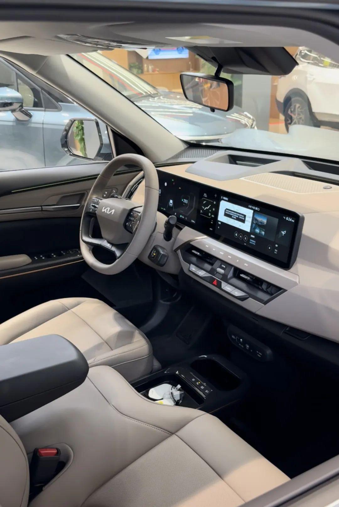 6座的中大型SUV不少見,6座的中型SUV不多見,6座的緊湊型SUV還是第一次見!好了!不賣關子了,這款車就是24款起亞EV5!說它是6座SUV是因為它的前排有三個座椅,中間這部分叫浪漫座椅,扶手可以往后翻折變成靠背,但實際坐感并不舒服,只能在停車時臨時坐一下。