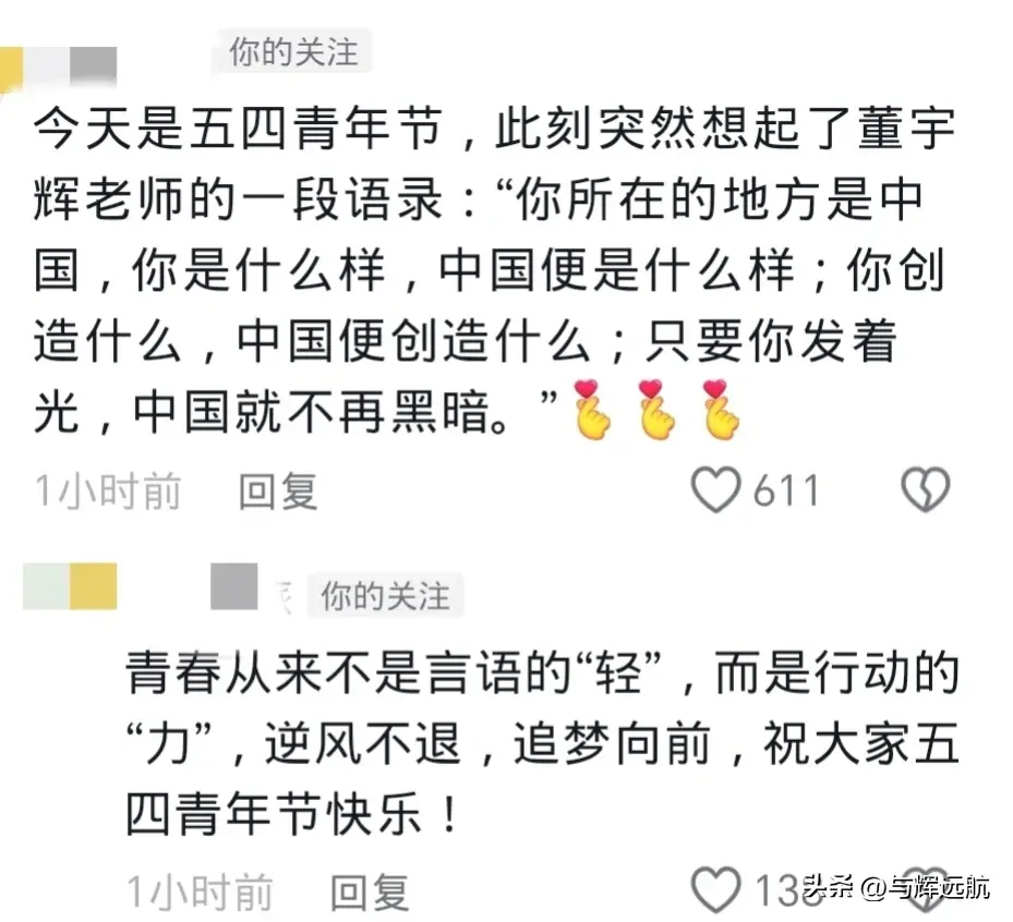今天,五一小長假的第四天,也是五四青年節(jié)。安安直播時朗誦了《青春》,祝大家五四青年節(jié)快樂。每個節(jié)日她們都會有精彩的輸出和祝福,這也是大家喜歡她們的原因,珍惜被人惦念的幸福!